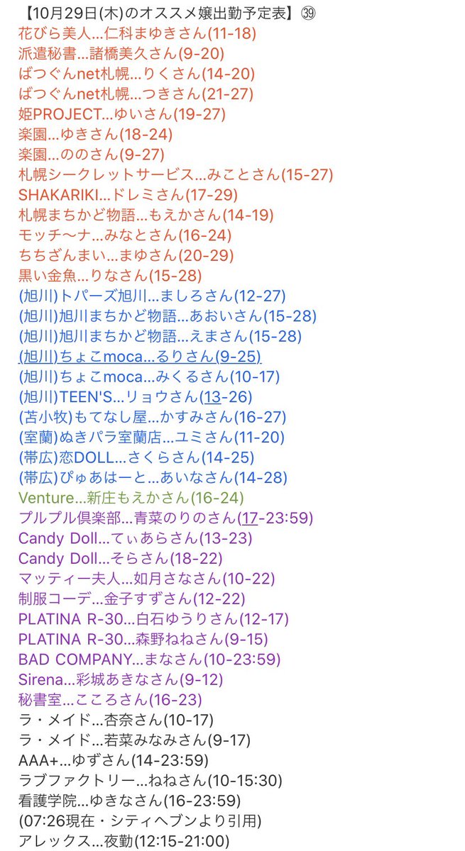 【10月29日(木)オススメ嬢出勤予定表・最新版】